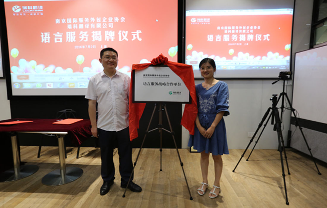 在慶典儀式上,南京市外包協(xié)會與瑞科翻譯公司舉行了“語言服務(wù)戰(zhàn)略合作單位”的揭牌儀式,期望借此合作能夠為服務(wù)外包企業(yè)在語言上提供更專業(yè)的服務(wù)。同時,瑞科翻譯有限公司與寧淮現(xiàn)代服務(wù)業(yè)集聚區(qū)管委會進(jìn)行了“語言服務(wù)合作簽約儀式”。據(jù)悉,在南京市外包協(xié)會5月組織的寧淮現(xiàn)代服務(wù)業(yè)集聚區(qū)的參觀考察中,瑞科翻譯公司與寧淮現(xiàn)代服務(wù)業(yè)集聚區(qū)已達(dá)成初步合作意向,現(xiàn)在此次慶典上成功簽約。