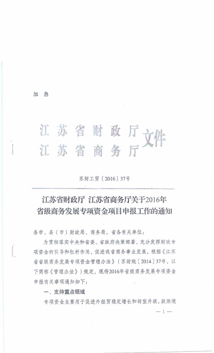 關(guān)于申報(bào)2016年省商務(wù)發(fā)展專項(xiàng)資金扶持項(xiàng)目的通知
